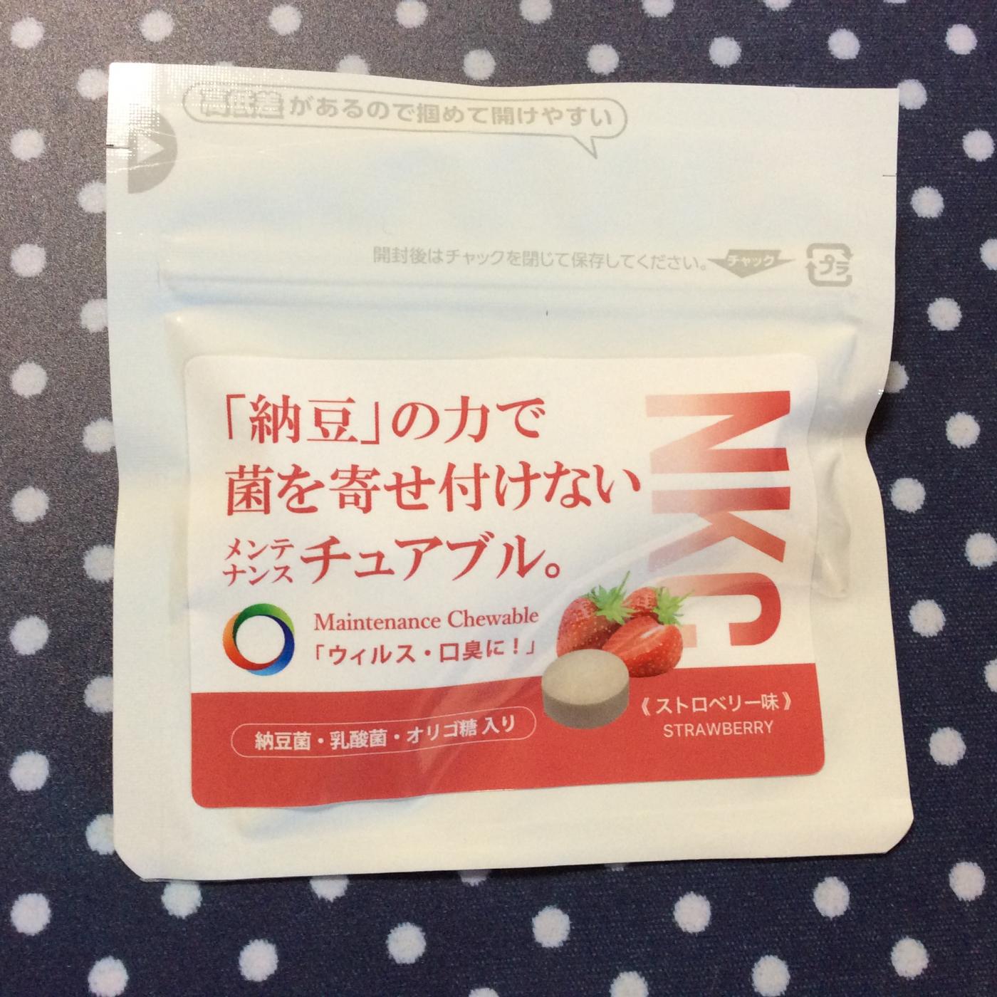 ストロベリー味で、チュアブル錠になっています。納豆の力と乳酸菌の力で、口内環境改善中です。後味す...