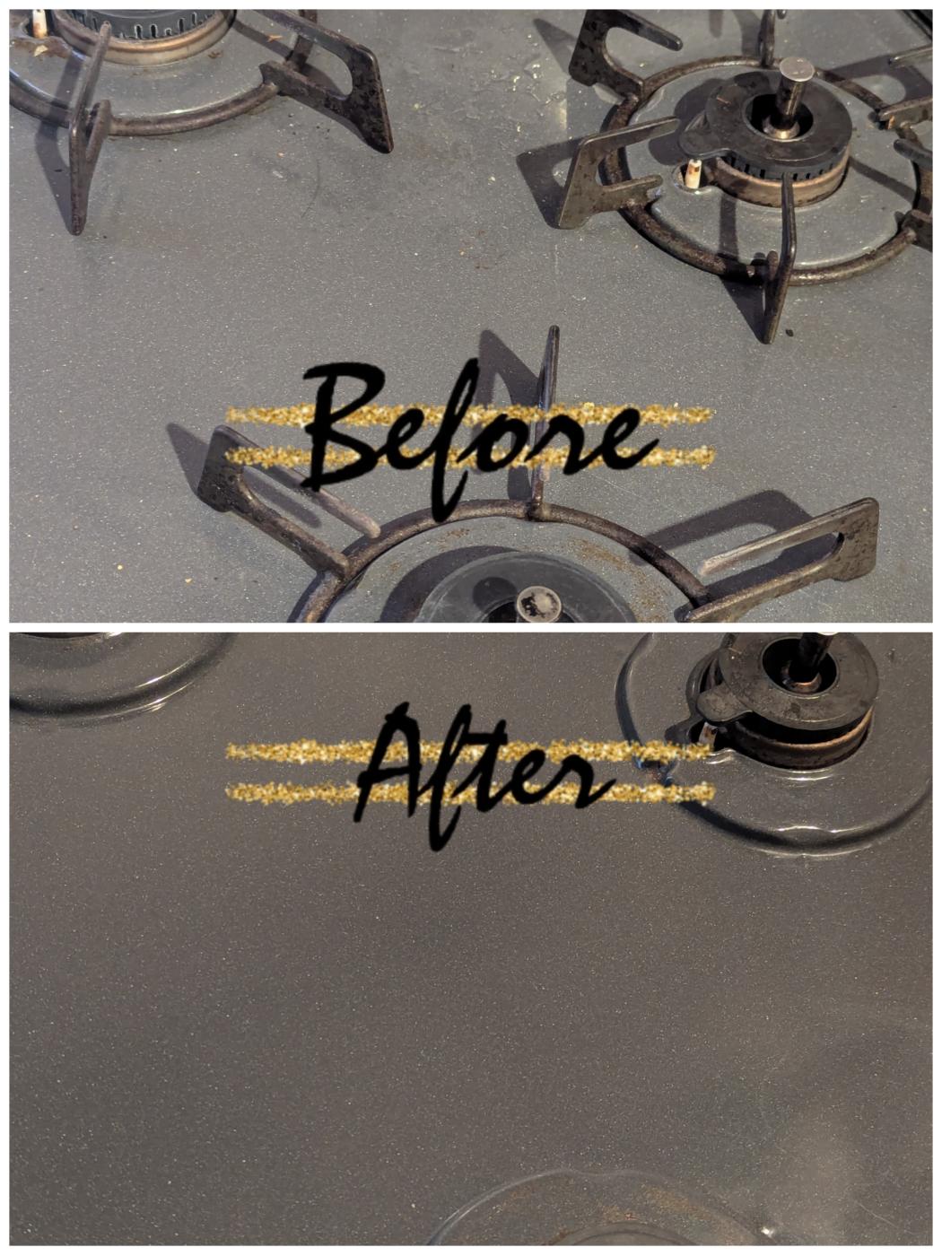 半分程少し濡らした状態で汚れたコンロを擦って拭いてみると、お料理でついた汚れを比較的簡単に落とすことができました。