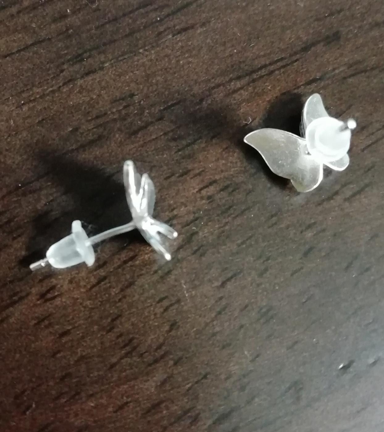 立体的な蝶のピアス、めっちゃかわいいです。 とても小ぶりで主張しすぎないけど、キラッと光るデザ...