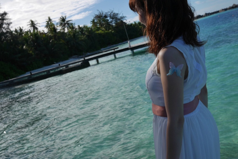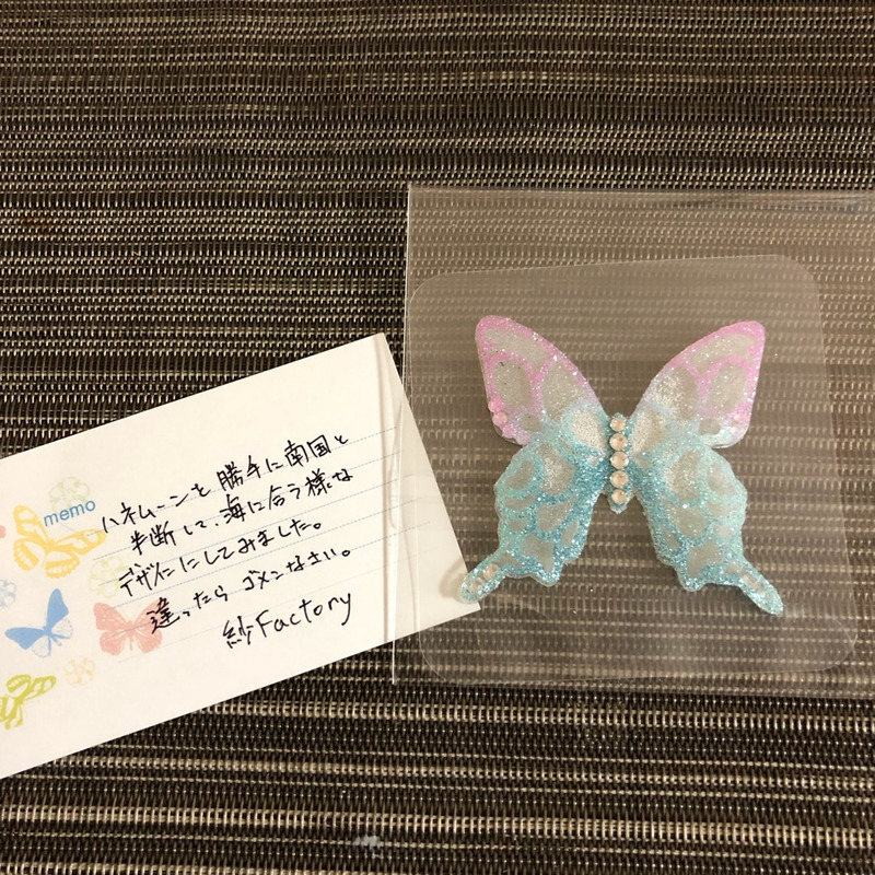 ボディージュエリーシートを新婚旅行先で使ってみたいなと思いその旨をコメントで伝えた時、肝心の場所を言っていなかったのですが紗Factoryさんは汲み取って下さりました。メモまでつけていただいてとても嬉しかったです。 ビーチで撮りたいなと思っていたのでぴったりでした。袋を開けてみるとシールは立体的で蝶々が羽ばたいているような動きをしていました!アクセサリー感覚でワンポイント付いているだけでオシャレ度がアップしたような気分になりました。紗Factoryさんのボディジュエリーシートは職人さんがひとつひとつ手作りしており高品質で安全な医療用シートが使用されているので敏感肌の方でもシールでかぶれることも無く貼っているという違和感も全くありませんでした。何度も使用できるので今回のリゾートだけでなく夏にプールや海に行く時や沖縄などで水着になるときのワンポイントで