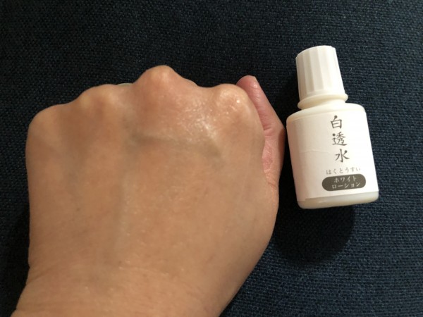 肌に塗布すると、乳白色から透明な化粧水に変わり、皮膚にスッと浸透していきます。
