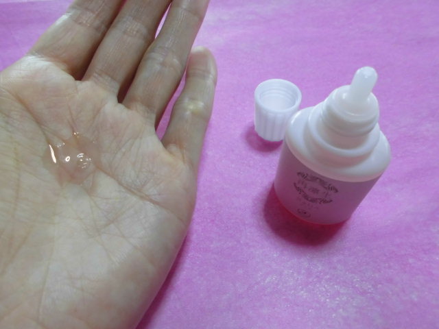 とろみのある使い心地で、薄いピンク色です。ベタつき感はなく、お肌に塗布した後の感触はさらっとしています。