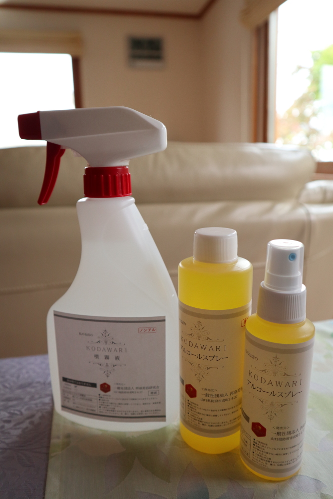 私の場合、KODAWARIアルコールスプレーは手の除菌に使用しています。