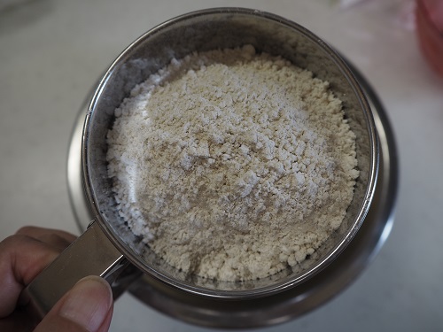 キメが細かい小麦粉なので悩んだけど、一応一度粉をふるって使うことに。
