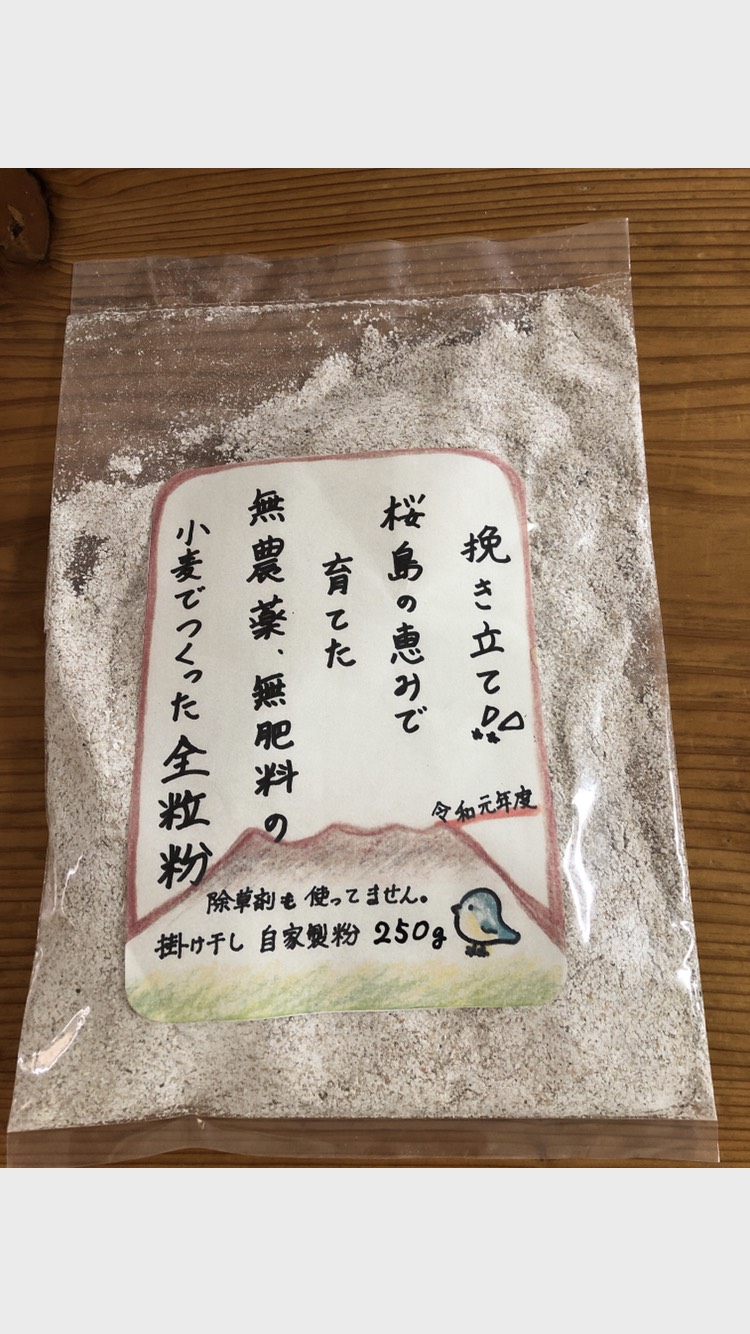 鹿児島県桜島の自然の恵みのなか、無農薬・無肥料で作られた全粒粉です! 素朴で手作り感あふれるパッ...