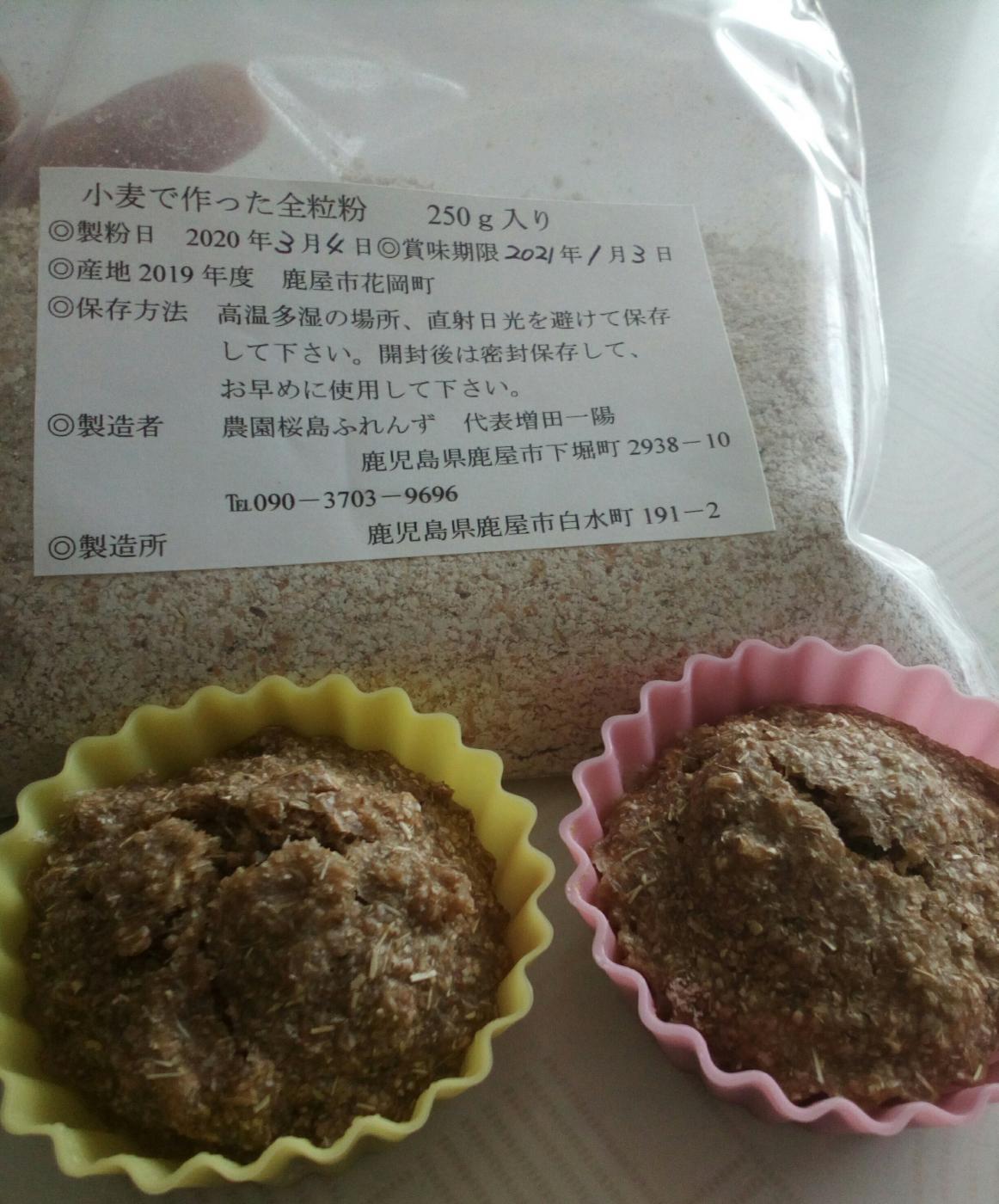 桜島ふれんずの全粒粉? どどんと250g届きました✨ こちらは桜島の大自然の恵みで育った、無農薬無肥...