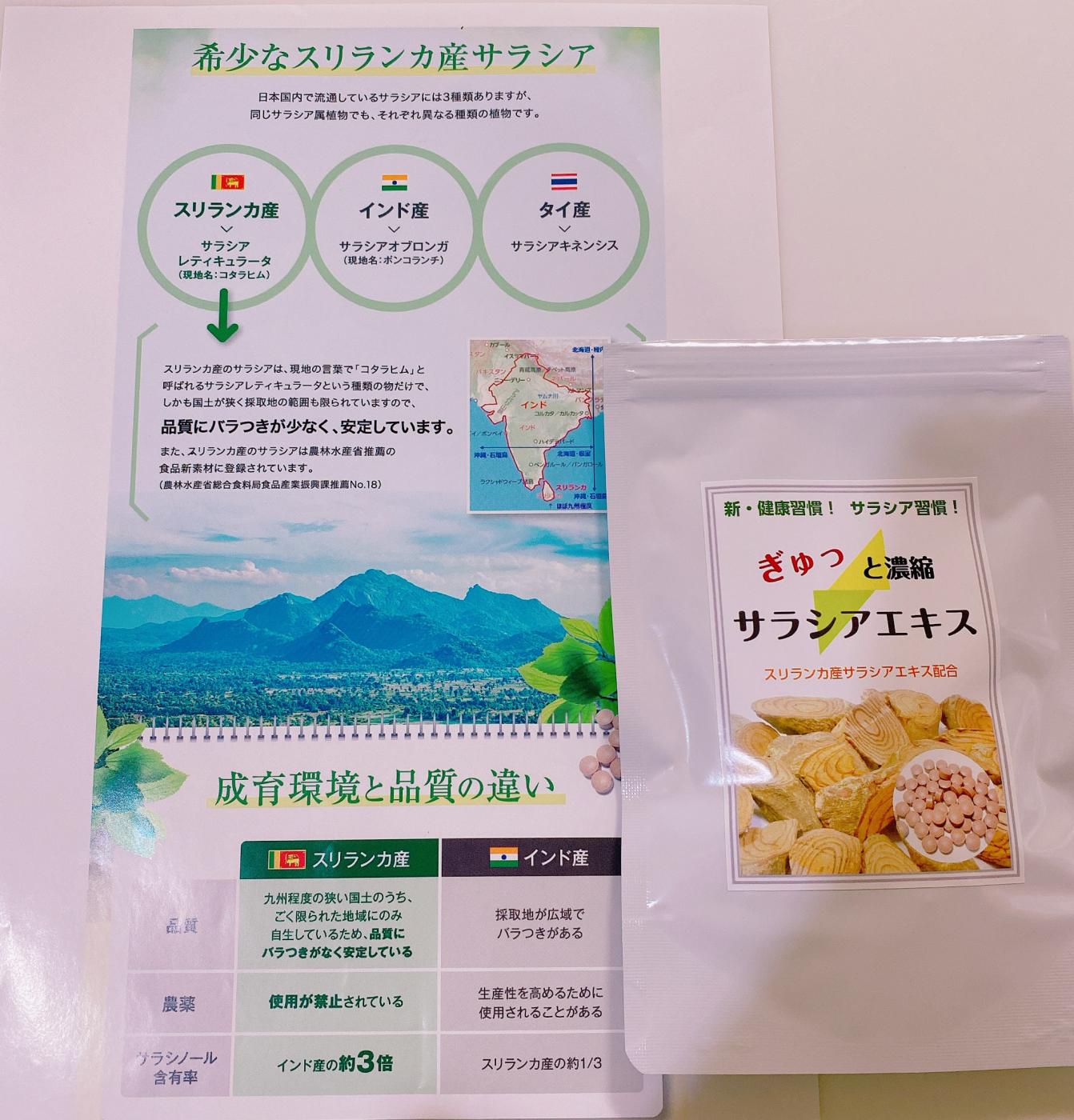 こちらは、日本肥満予防健康協会認定ダイエットアドバイザーが監修している、希少なスリランカ産のサラシアエキスがぎゅっと濃縮されたサプリメント。