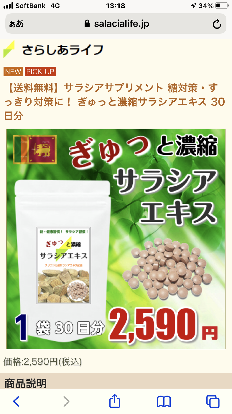 さらしあライフの「 ぎゅっと濃縮サラシアエキス 」 1袋30日分価格:2,590円(税込) #モニター させ...