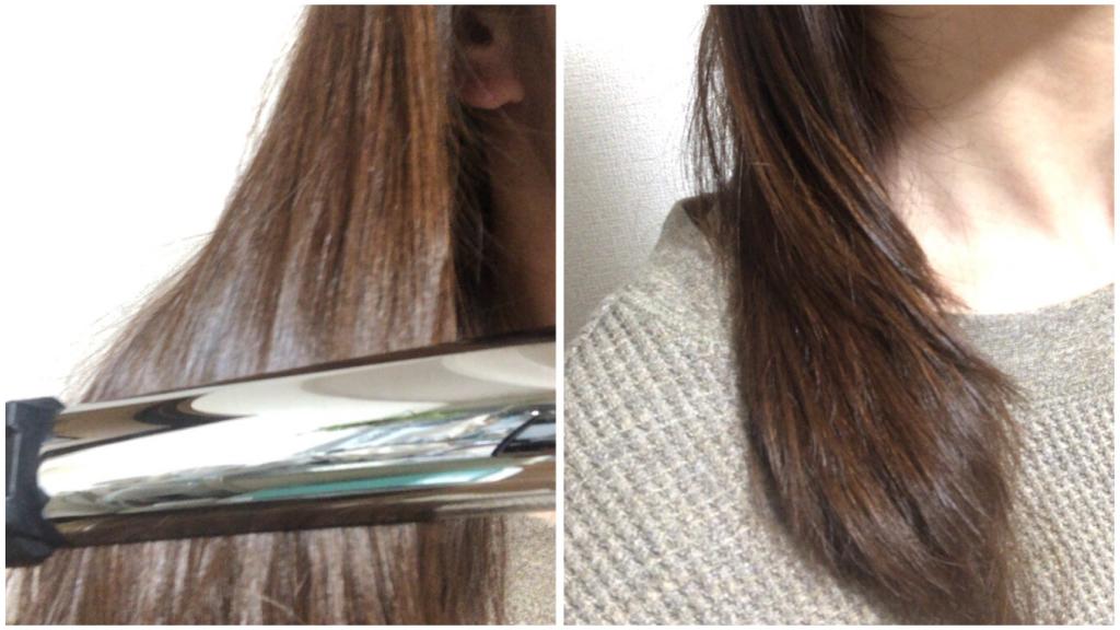 髪を挟んですーっと下ろすと毛先までストンとストレート
