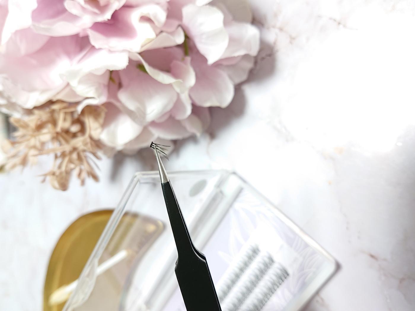 スクリューブラシで梳かしてから1束取って接着剤を付けてピンセットでつけていきます🙌🏻