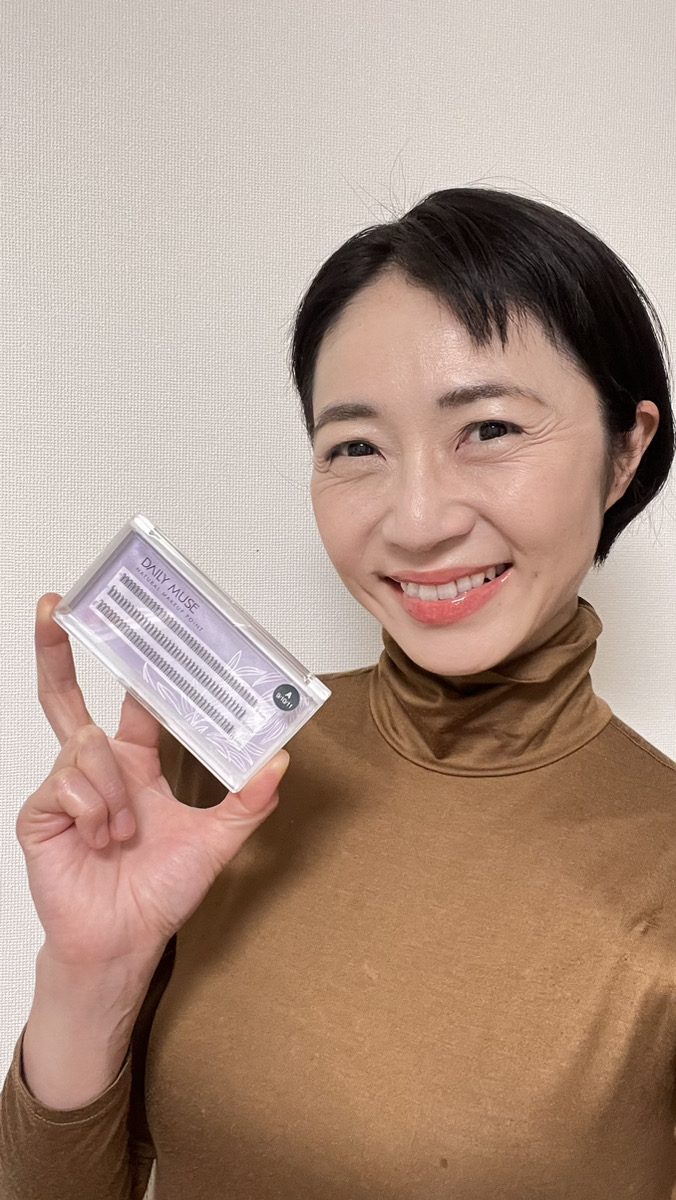 今日ご紹介する商品はこちら♡「DAILY MUSE 部分つけまつげ」です。自分で言うのもなんですが、わりとまつ毛は長くて量が多い方なので、これまであまり付けまつ毛ってしていなかったのですが、このところ年齢と共にだんだん髪の毛の量やまつ毛の量も減ってきた感じなので、最近は、付けまつ毛をしてみるようになりました。モデルの遠巻きでの撮影時は、目元の存在感が薄れないようにできるので、結構使えます。「DAILY MUSE 部分つけまつげ」は、自分のまつ毛にプラスして部分まつ毛としてチョイ足しできるので、普段の自分の目よりも目力アップしたい時や瞳を大きく見せれるので、とても気に入ってます。