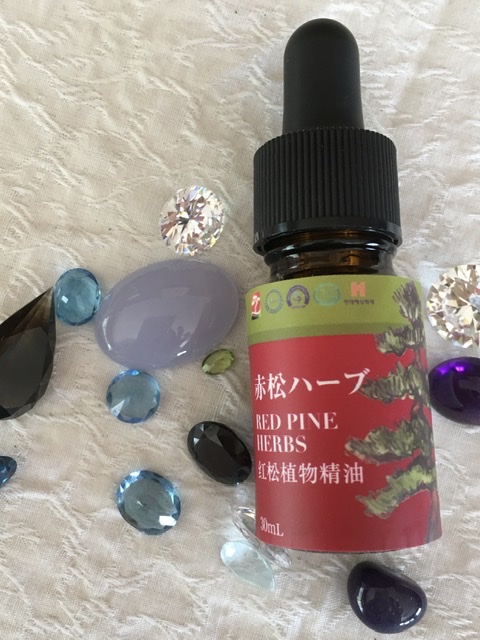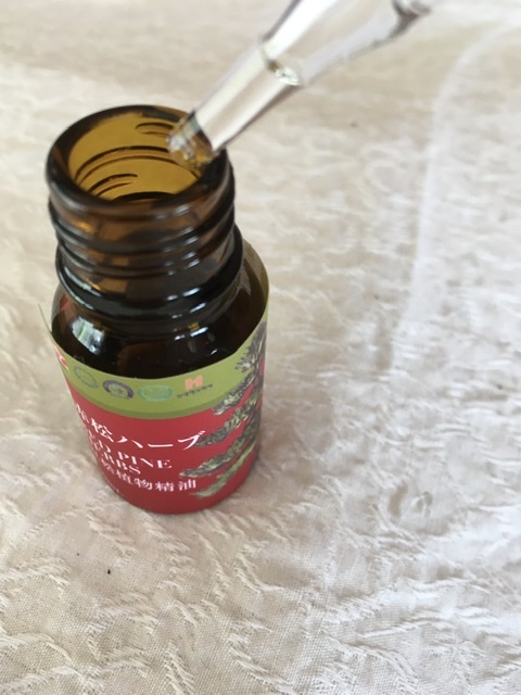 精油(赤松ハーブ)について、精油は植物のもつ芳香成分を抽出したオイルを精油(エッセンシャルオイル)といい、その香りは中枢神経や抹消神経、ホルモン等の働きを整え、体内のバランスを恒常性に保つ作用があり、経皮吸収も大きな特徴だそうです