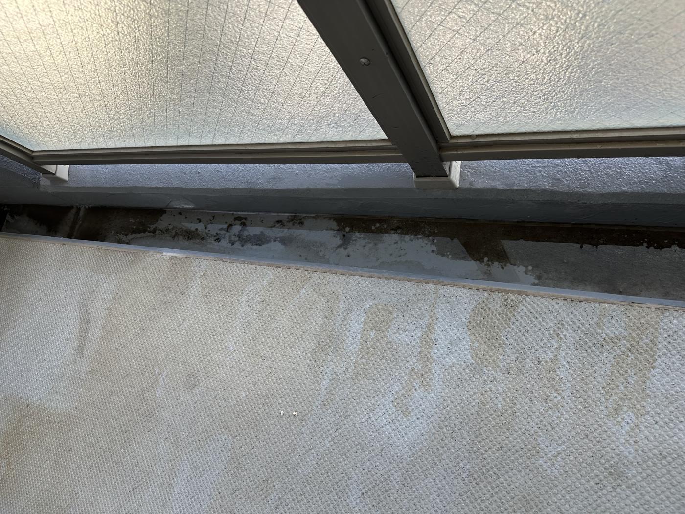 えー、まずはエアコンの室外機の横にあるホースから出る水で汚れた床。