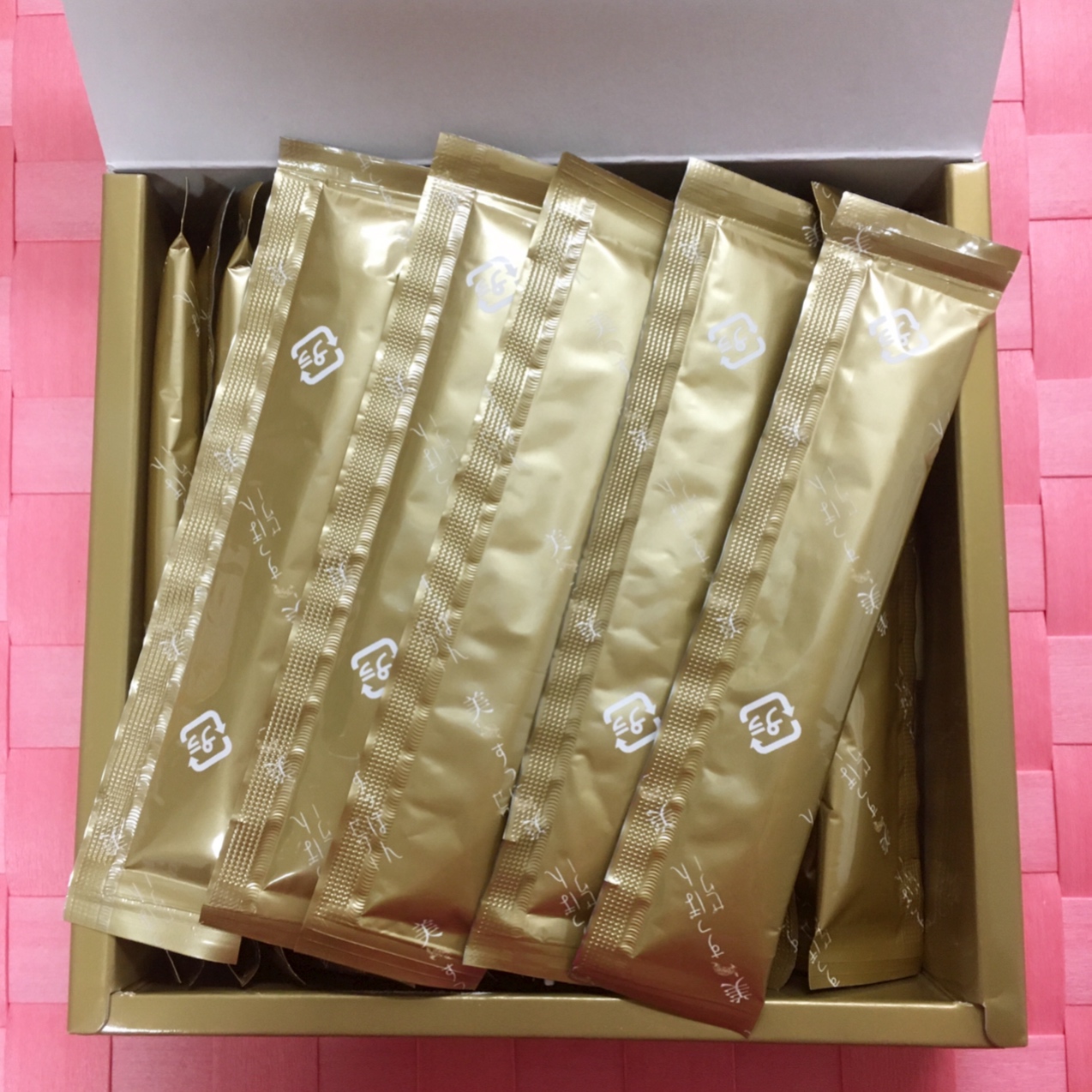 スティックタイプなので持ち運びにも便利、箱もスティックもゴールド仕様で高級感が漂っています。