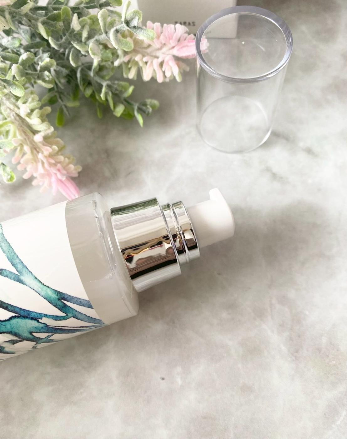 容器をよく振ってから、清潔な手のひらに3〜4プッシュを目安に取り、
