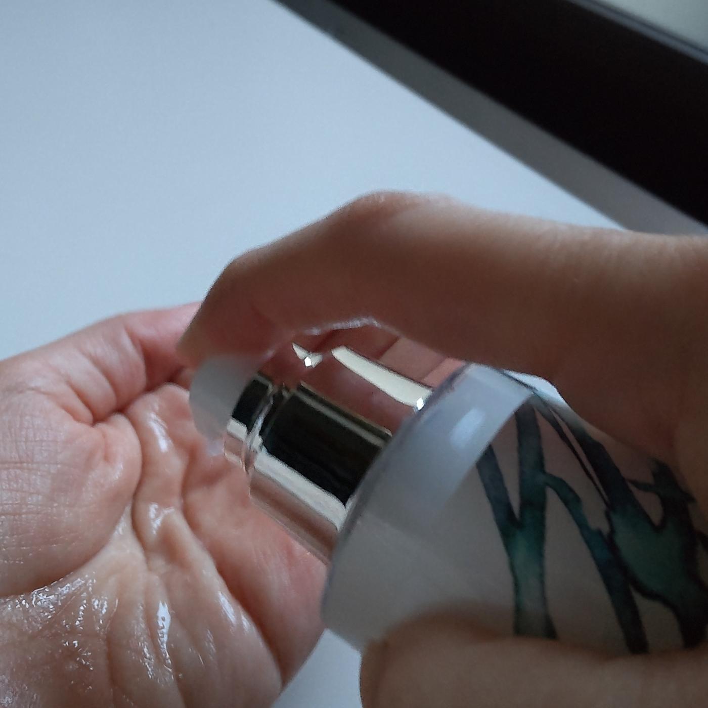 手に取るとほとんど水のように軽いテクスチャーで、肌に広げるとすーっとなじみます。でもなじんだあとは、ほっぺに手のひらが吸い付くようなもっちり感。重ねづけしてもベタつかないので、使いやすいです。
