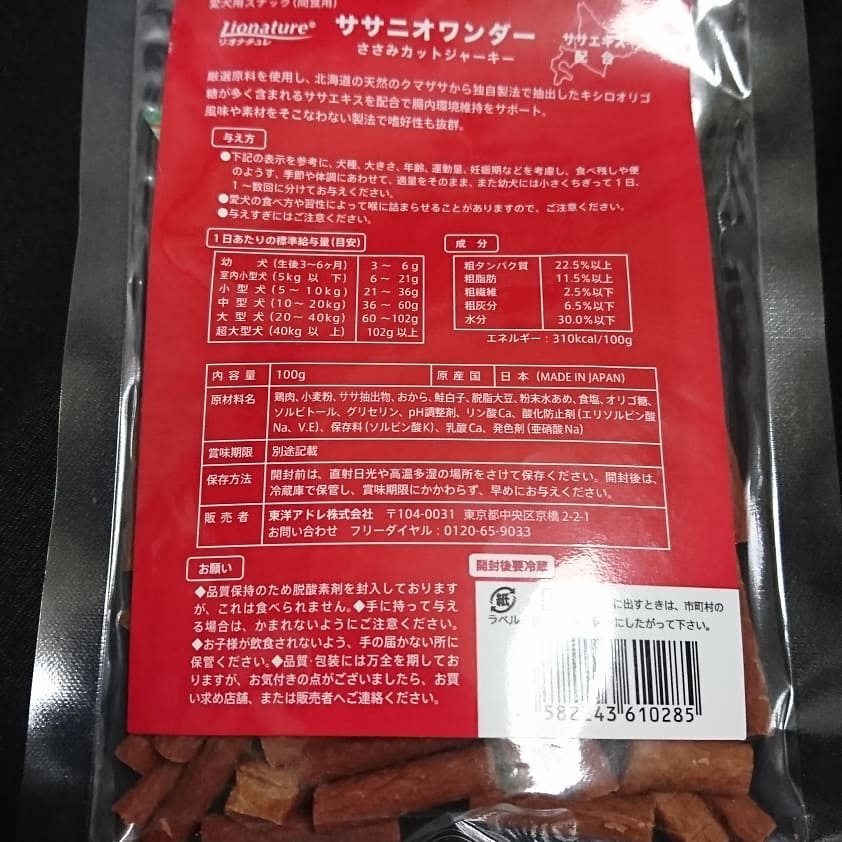 クマザサエキスが免疫力と腸内環境をサポートしてくれる!ささみジャーキー【ササニオワンダー】のご紹介...