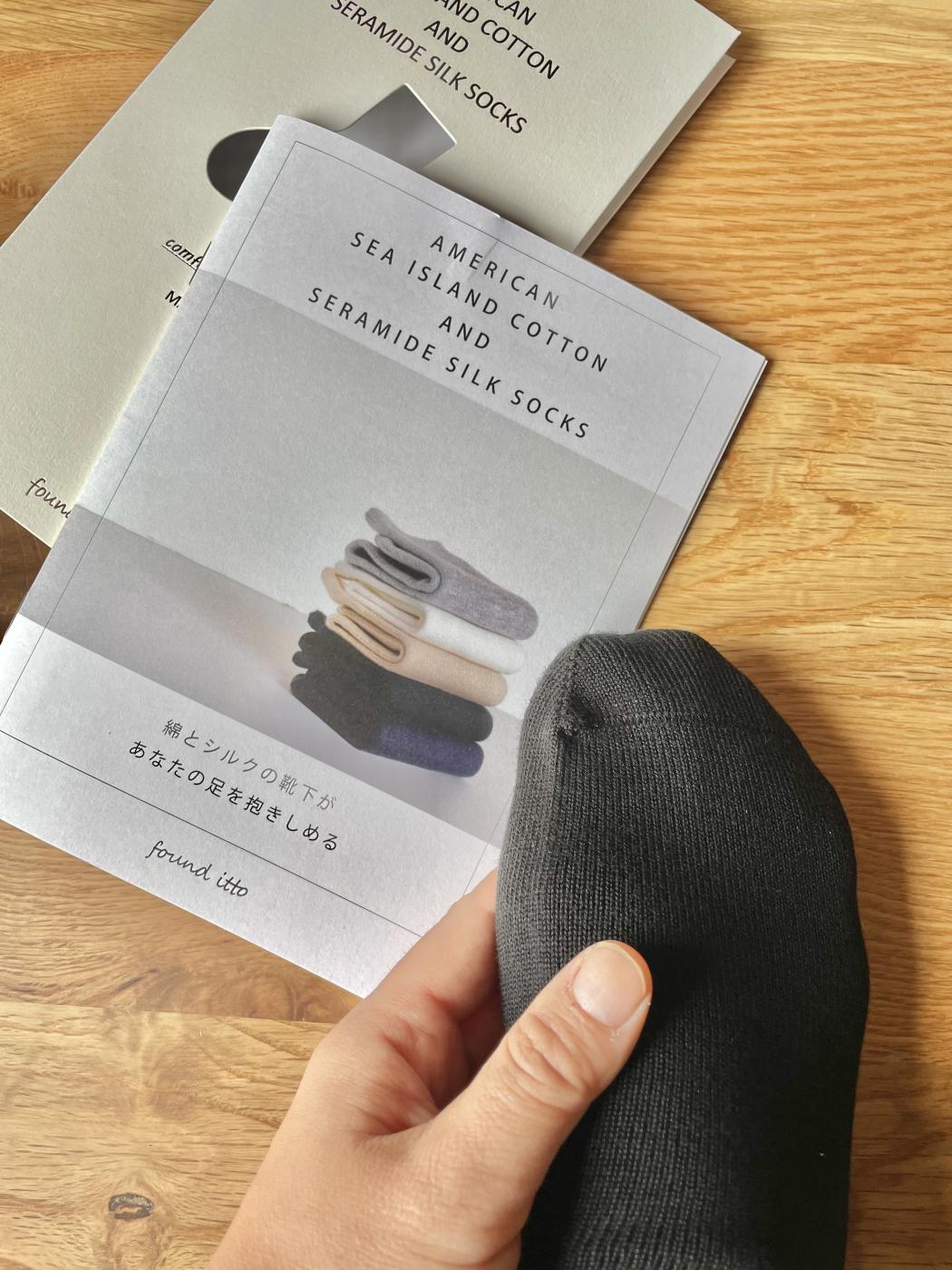 この靴下はホールガーメントという技術を使い、内側が全面シルク、外側がコットンの2重構造なんですって。だから夏は涼しく冬はあったかい💕