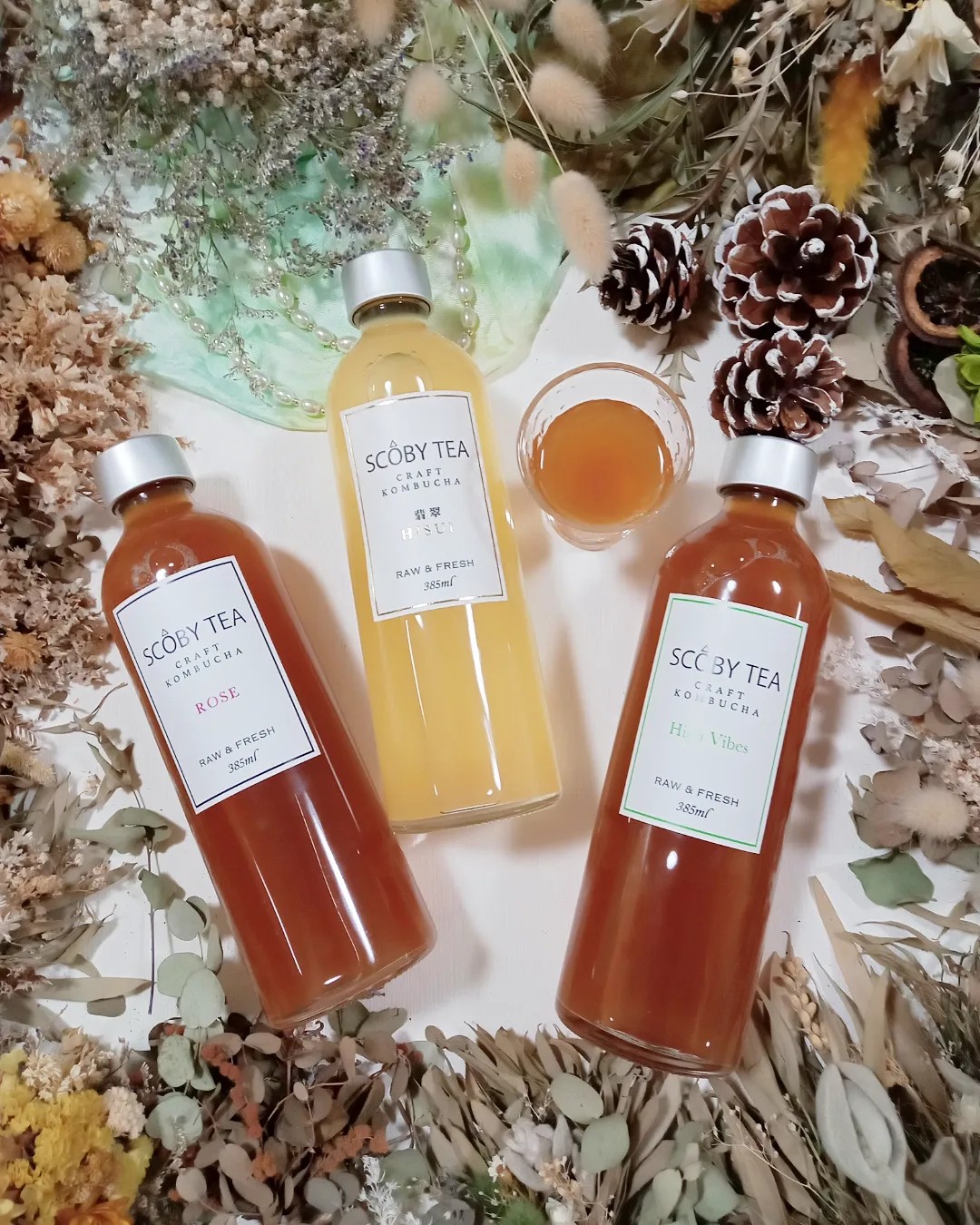 SCOBY TEA 翡翠・ハイバイブス・ローズ 385ml 📌ᴾᴼᴵᴺᵀ ・熱処理されていない生の状態の乳酸菌入り ...