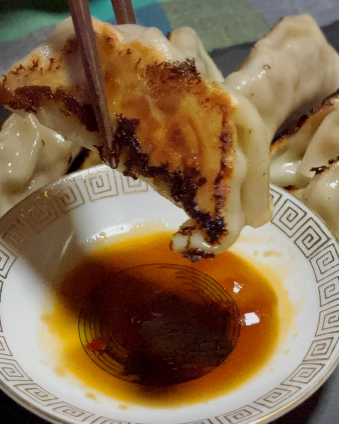 そしてパリッと焼き上げた皮を噛むと、もっちりした弾力とともにお肉とお野菜の旨味がじゅわっと口いっぱいに広がります♪