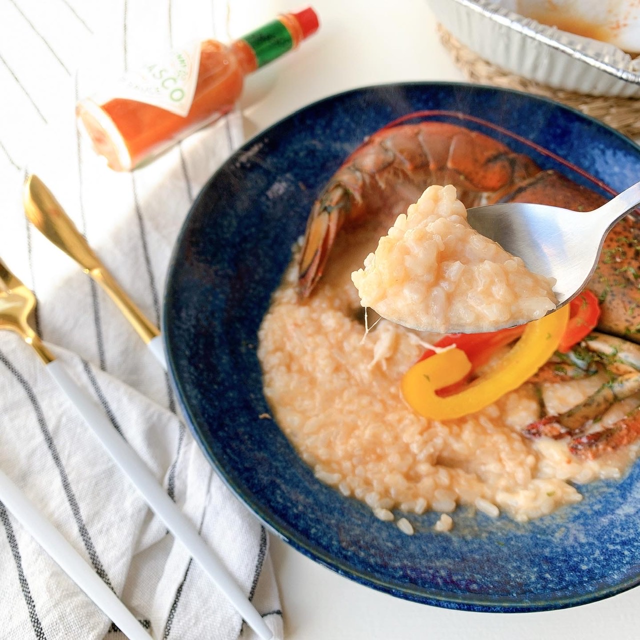 オマール海老が丸ごと入った見た目はインパクト大で一気に華やかな食卓になりますね🥰