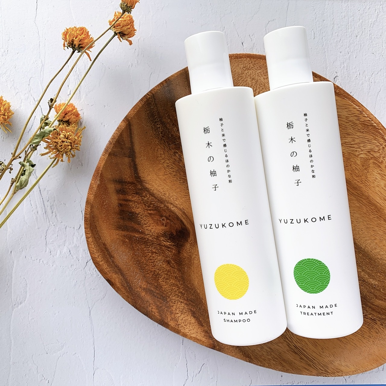 栃木県産の無農薬栽培された柚子を抽出、エキスとオイルにして配合し、お米も加えた自然を感じるシャンプー。