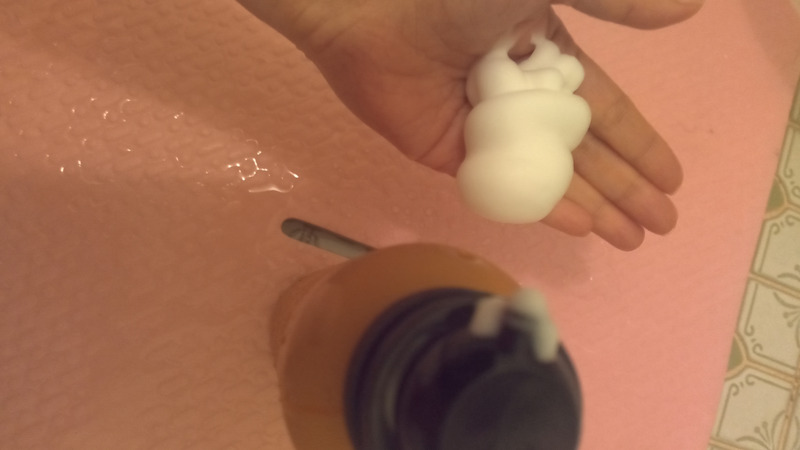 上下によく振ってからピンポン玉3つほどの泡を手に取って