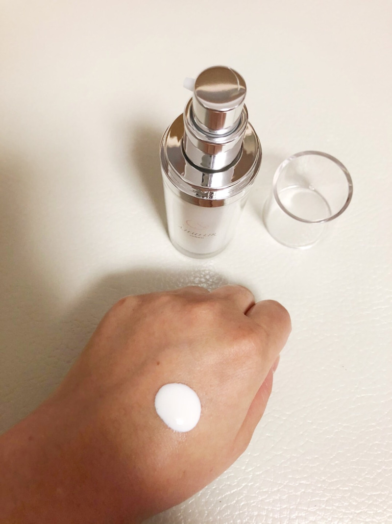朝と夜、化粧水の後、2~3プッシュを手のひらにとり、顔全体になじませます。