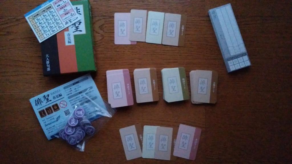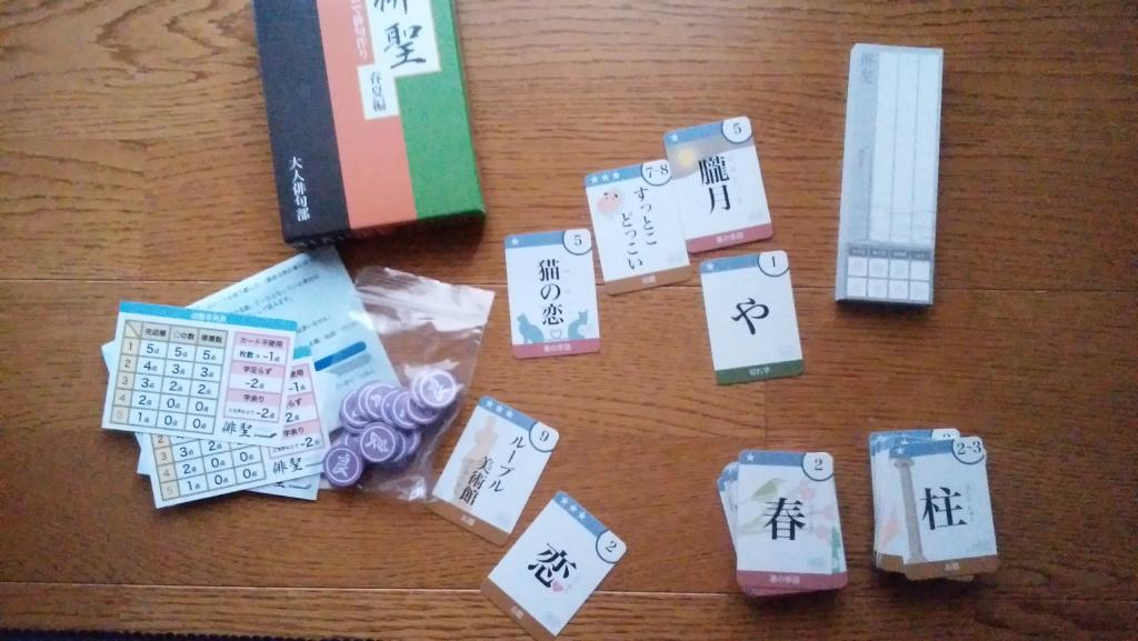モニターとして商品をいただけたので紹介。 「俳聖」という、俳句を題材としたカードゲームです。 ...