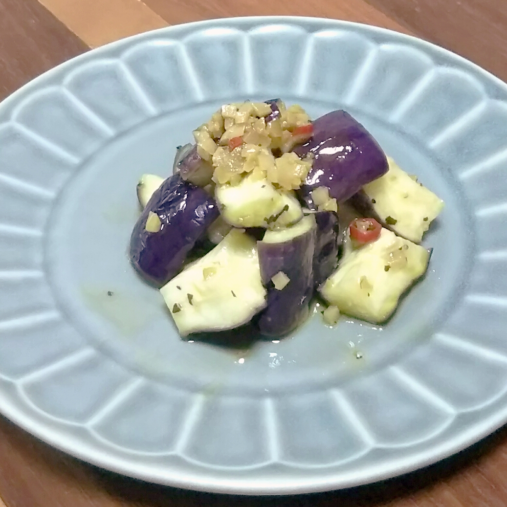 カットしたナスをレンジで加熱し、パスタソースを和えただけです。