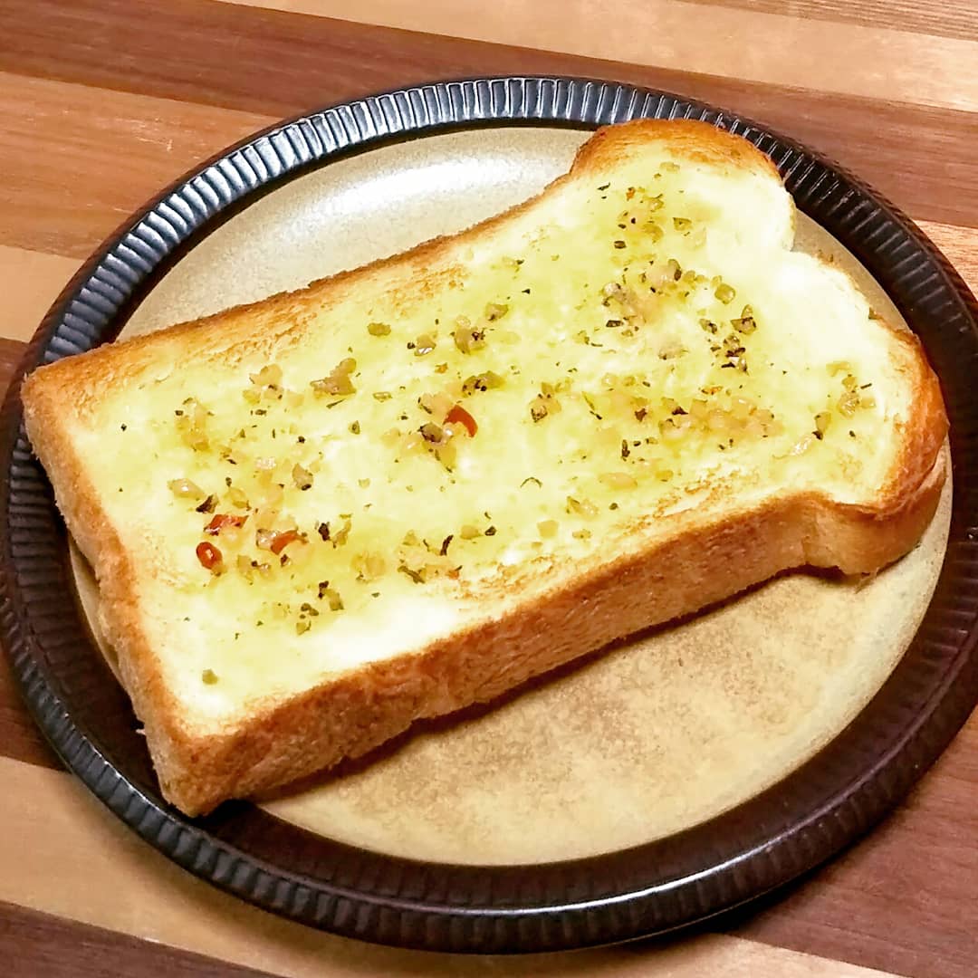 辛さと風味のあるガーリックトーストが簡単に出来上がりました。