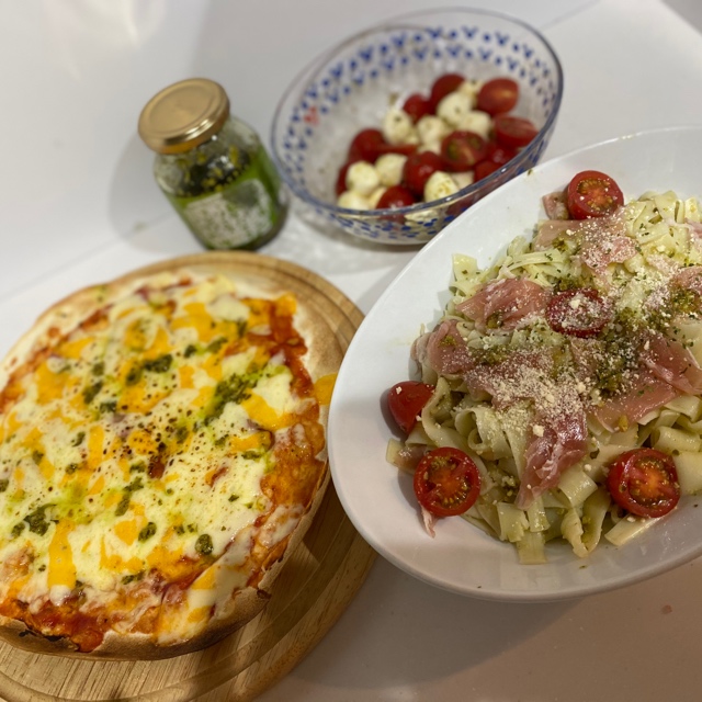 ✔︎生ハムとトマトのジェノベーゼ冷製パスタ