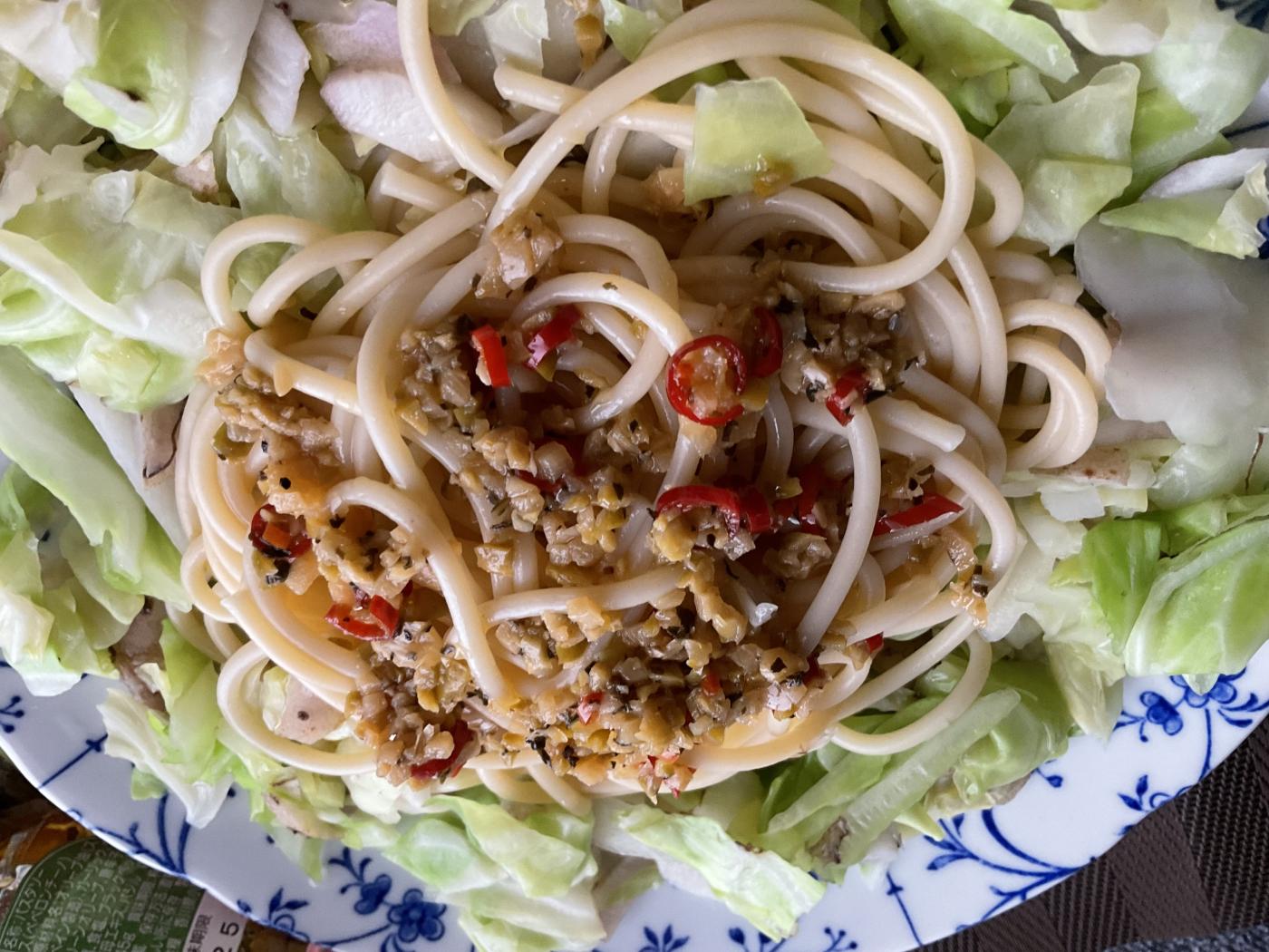 オリーブオイルやガーリック🧄唐辛子🌶️など風味豊かなペペロンチーノを美味しく頂けます。お野菜の栄養もとれますね。