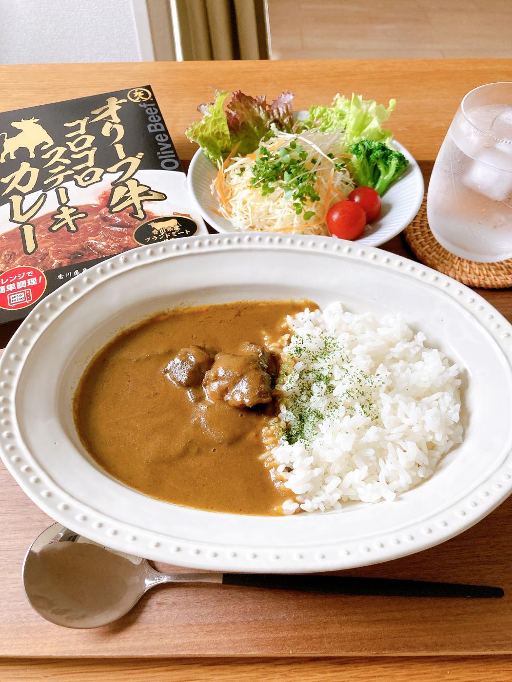 うまいもん屋 庄八さまから発売の『オリーブ牛ゴロゴロステーキカレー』を提供いただき、お試しさせてい...