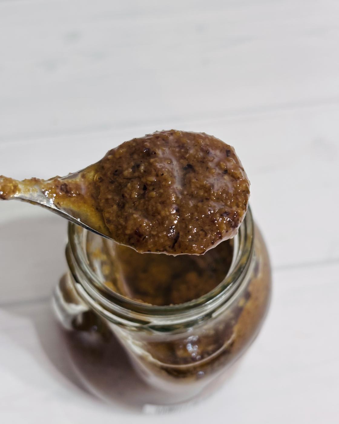 蓋を開けて、中身を混ぜてからスプーンで取り出しました。