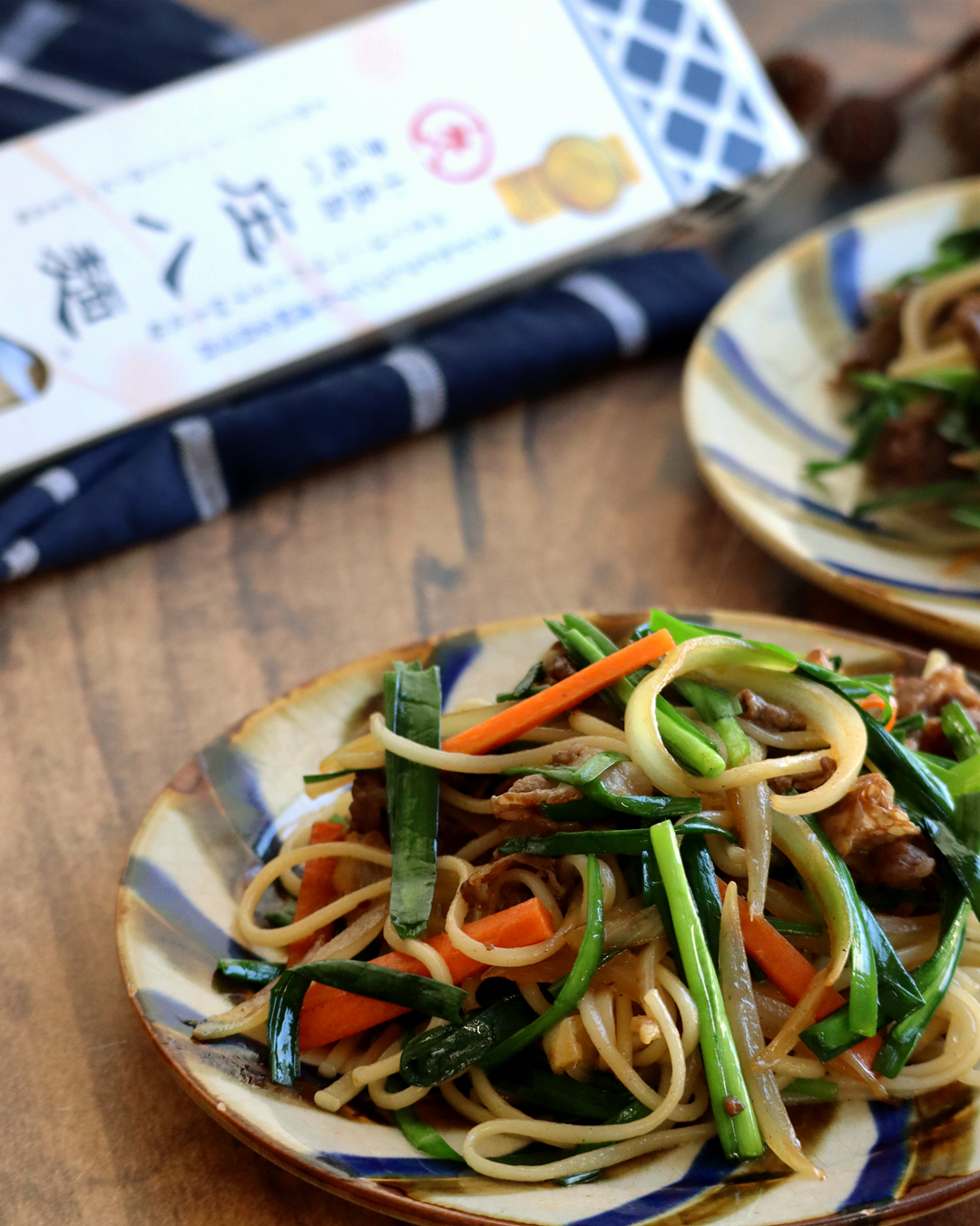 焼き付けても麺がへたらず、手延べ麺らしいもっちり感がしっかり残るので、炒め麺にも相性抜群です。