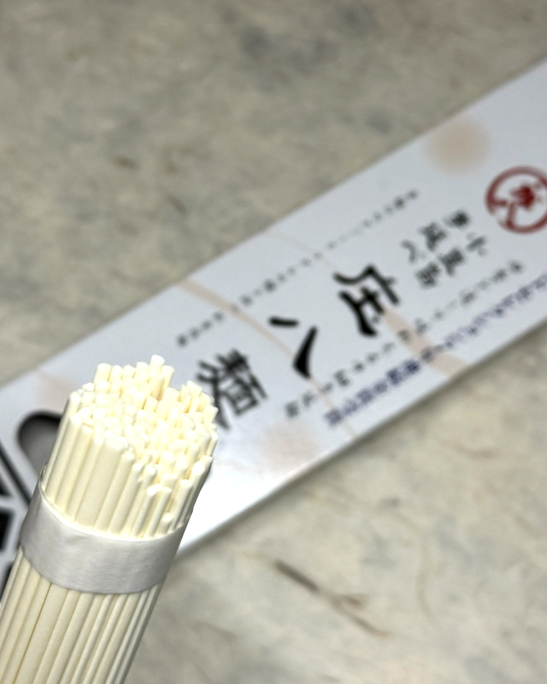 江戸時代初期から続く小豆島の手延べ麺づくりの技が息づく麺は、つるりとしたのど越しと、ほどよいコシが共存する独特のおいしさ。細身でありながらも、温かい料理にも冷たい料理にもすっと馴染む柔軟さがあります。