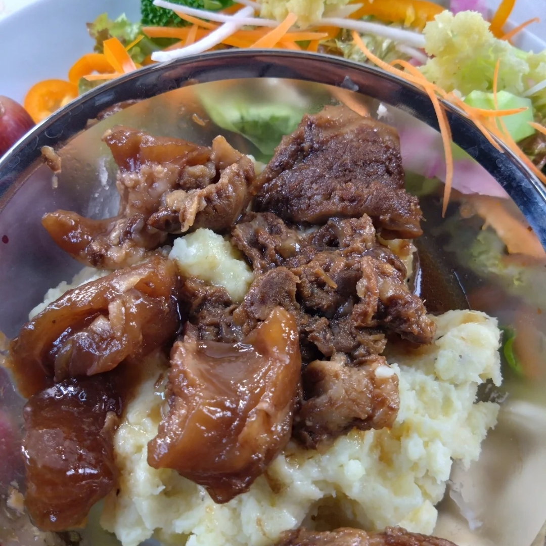 その上に牛すじワイン煮をトッピング。見た目もちょっとおしゃれに(出来たかな?😅)