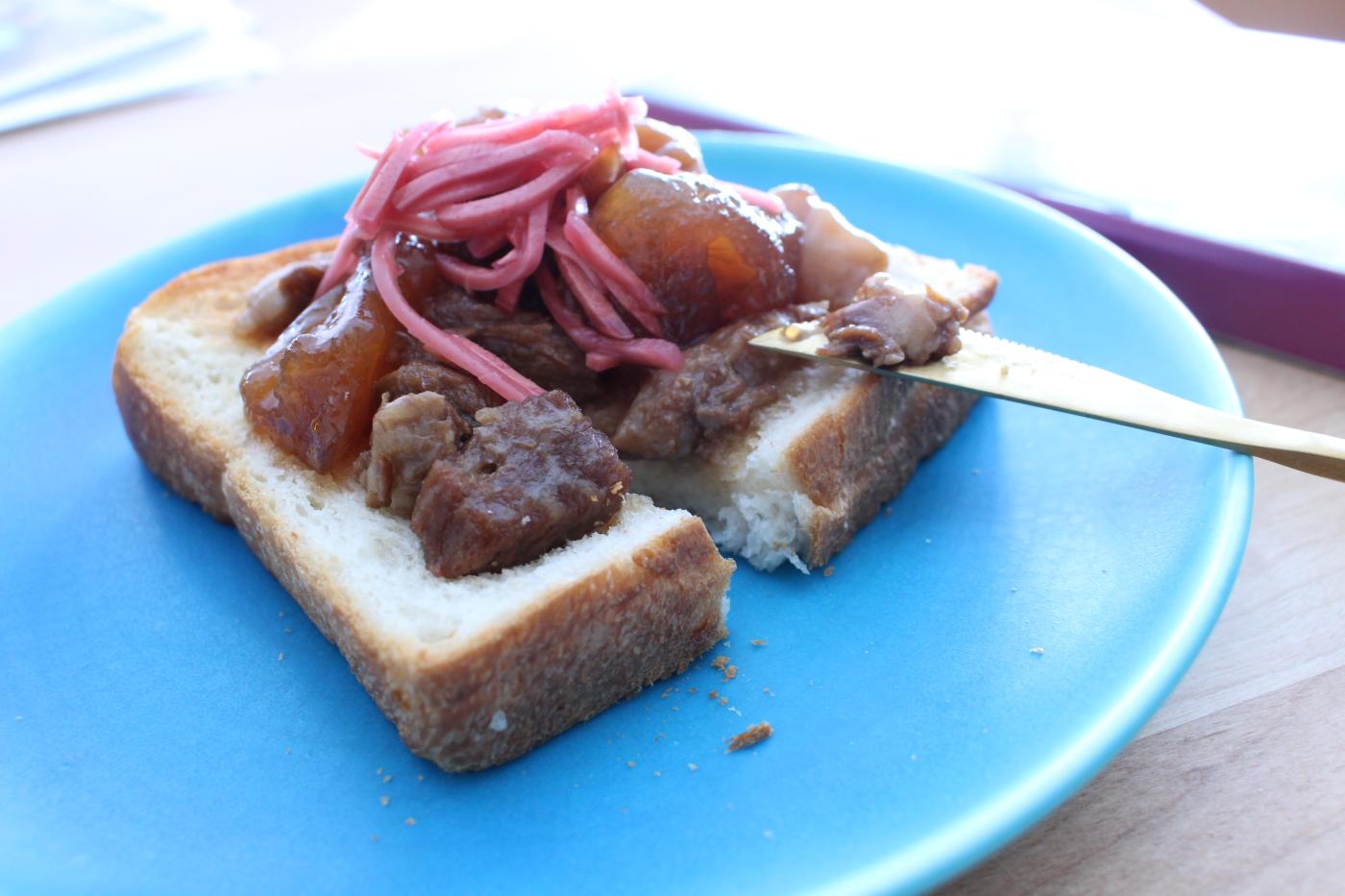 ほぼ噛まなくてもいいぐらいのとろっとろの牛すじで、ワインの風味も感じる大人のトーストになりました☺️