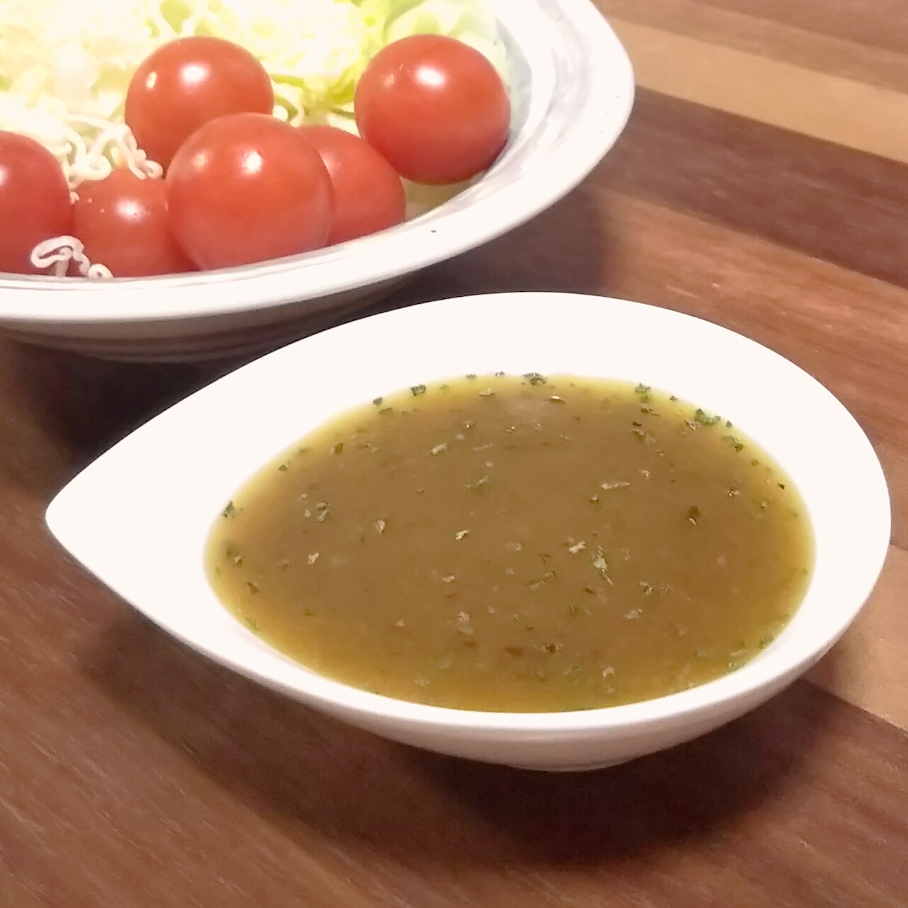 オリーブオイルとパセリも混ぜて塩胡椒した栄養満点系のドレッシングです。