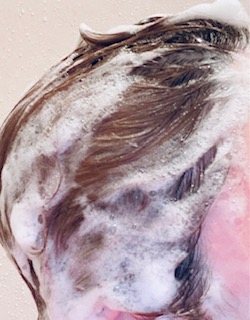 1回目の洗髪は「ランブットシャンプー」を手に取り、よく泡立ててから全体をマッサージするように洗髪します。