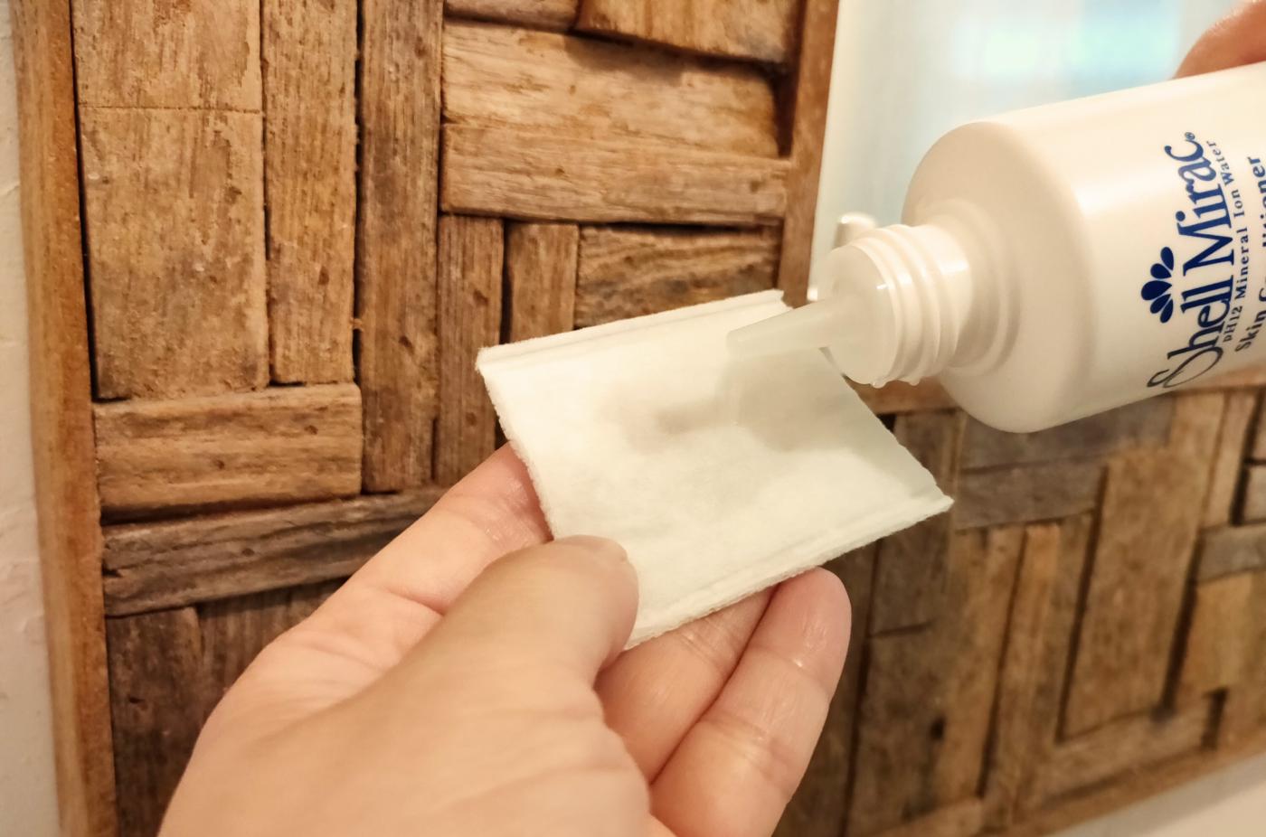 拭き取るタイプなので、洗顔後コットンに本品をたっぷり出して肌に少し馴染ませてから拭き取っています。