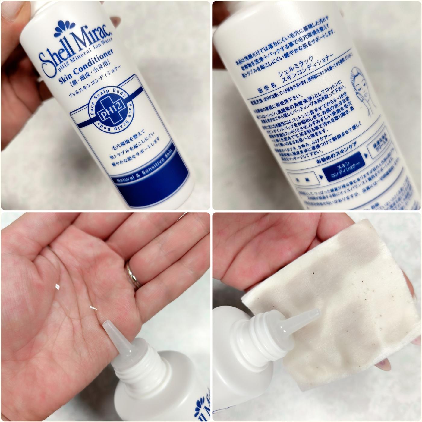 「シェルミラック スキンコンディショナー」は、海洋ミネラルを含む、PH12の強アルカリのミネラルイオン水を使用した自然化粧水。