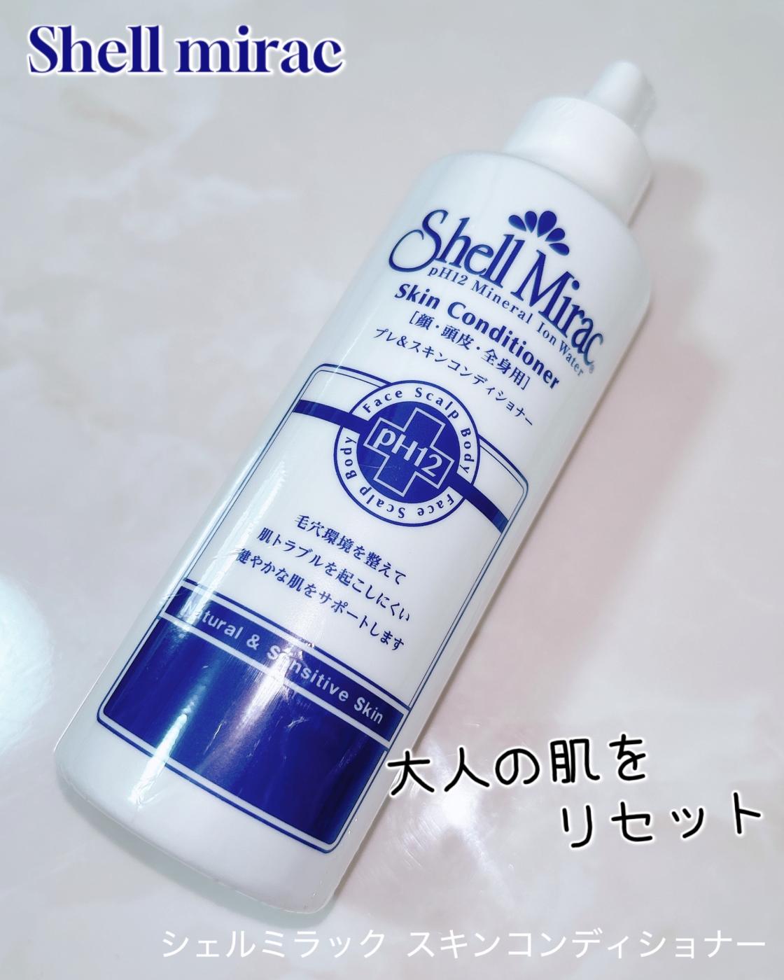 シェルミラック スキンコンディショナーは、海洋ミネラルを含むPH12の強アルカリのミネラルイオン水を使用した自然化粧水。