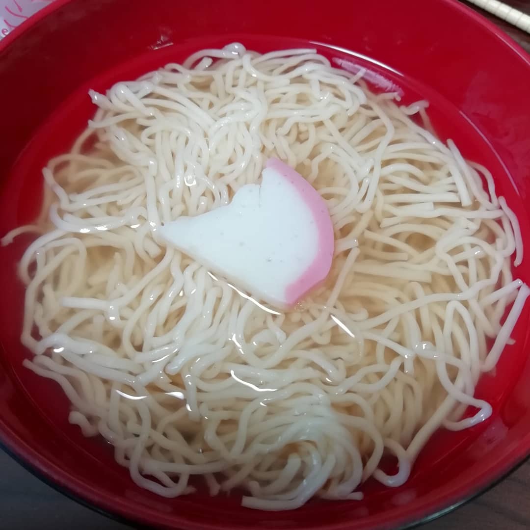 地元のお醤油とお塩を混ぜて、そうめんとかまぼこを入れる