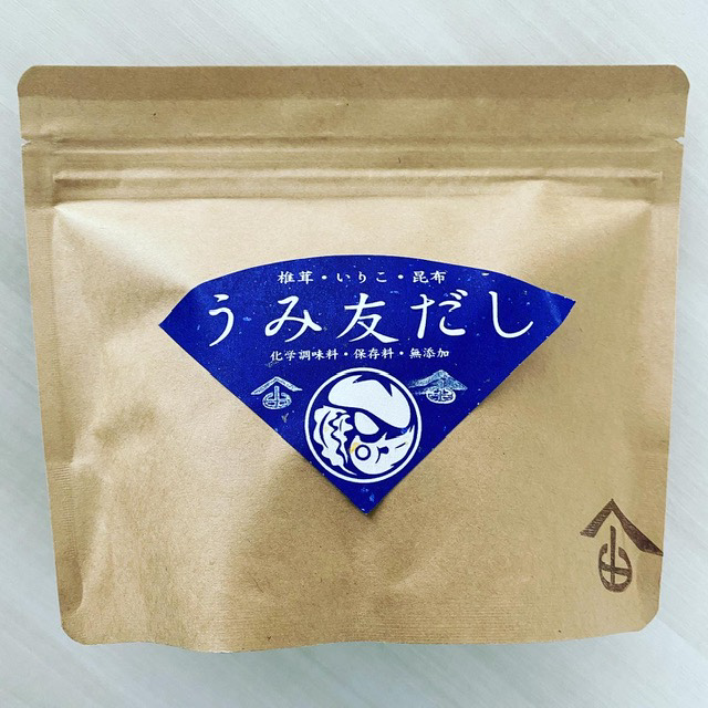 海の物を使った「うみ友だし」は甘味の強いしいたけ、佐伯イリコ、羅臼昆布の出汁パックです。色々なものが入っていてどんな料理にも活用できそうです。