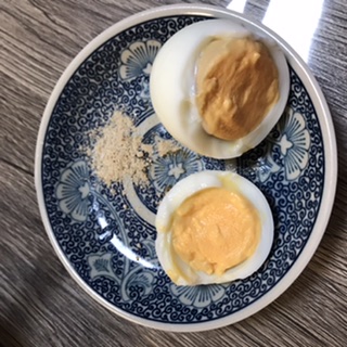 塩と混ぜてゆで卵につけてみました。これが一番、しいたけのうま味をダイレクトに感じられました。いつものゆで卵が、ワンランク上のゆで卵になります。