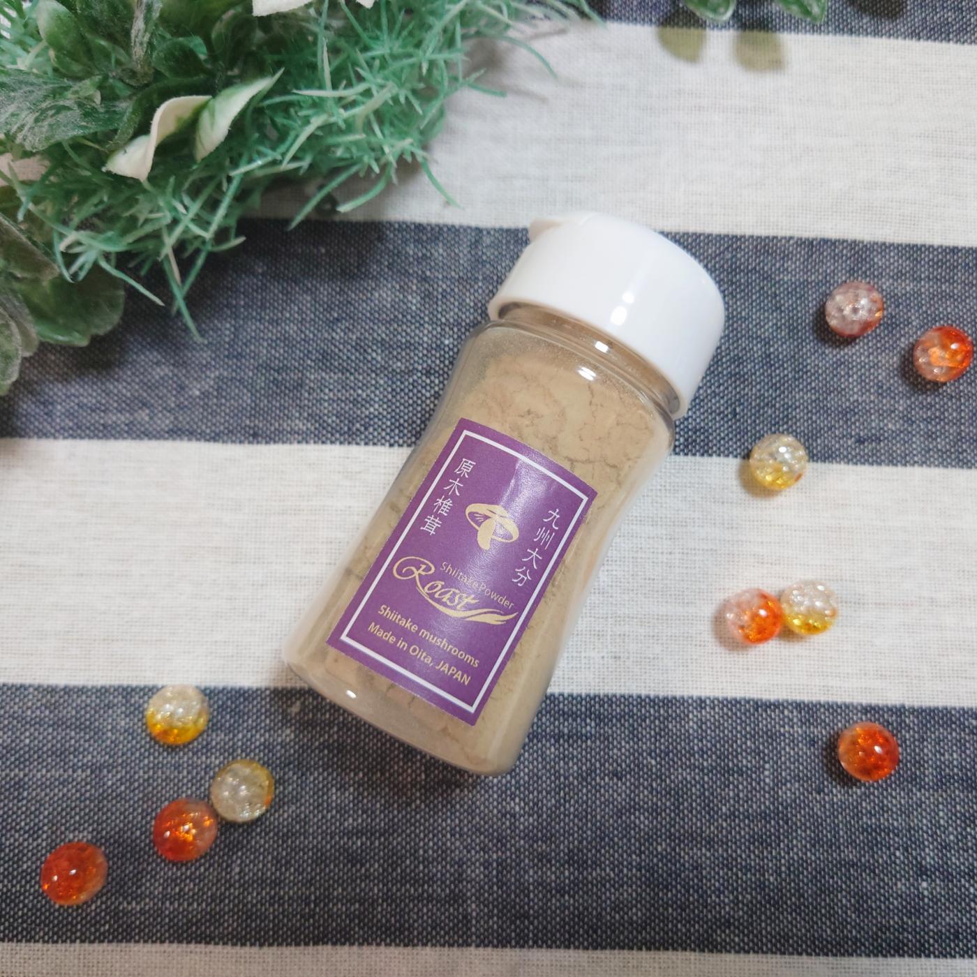 無農薬、自然栽培の原木しいたけのなかでも味の濃いおいしい品種を厳選してローストしてパウダーにした、しいたけの香りが美味しいパウダーとなっています。細かいパウダー状なので溶けやすく、加熱済みなので手軽にお料理に振りかけて楽しめます。