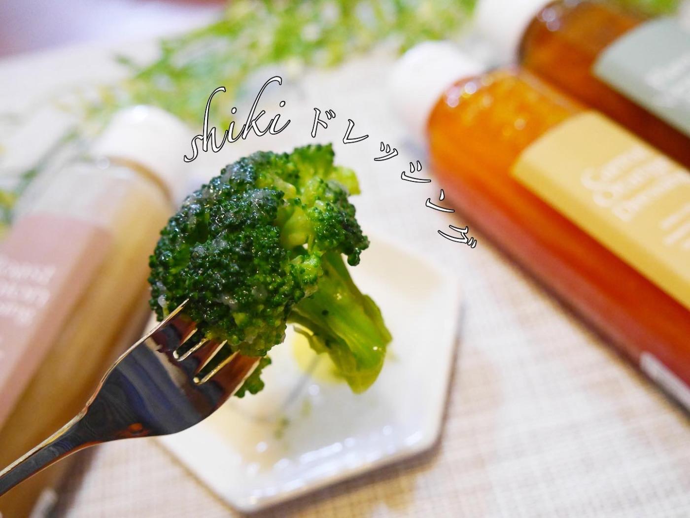 具材がしっかり入ったドレッシングだから、まずは振る‼︎