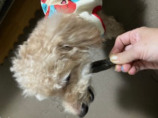 少し小型犬にはそのままでは固いらしく、半分に折って与えたら食べてくれました。
